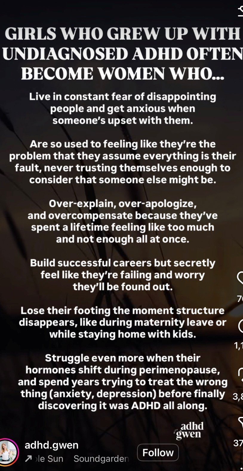In my quest to find answers about myself, I consumed a lot of information about ADHD. Everyone should 100% do what’s best for them, but I am sharing this image because it 1000% resonated for me.
