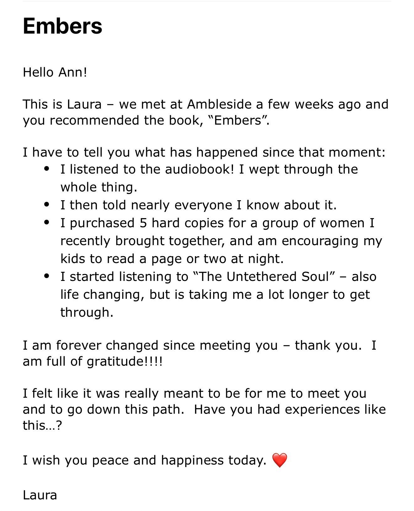 I share with you the email I sent to this woman I met - serendipitously – that day.